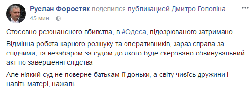 Правоохранители задержали мужчину, которого подозревают в жестоком убийстве девушки, которую несколько дней назад нашли на Молдаванке обезглавленной. Об этом сообщил советник начальника Главного управления Нацполиции в Одесской области Руслан Форостяк.