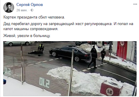 Во вторник, 6 марта, на пересечении улиц Шелковичная и Институтская в Киеве президентский кортеж сбил пожилого мужчину.