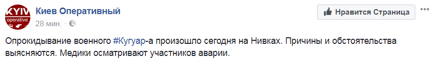 Днем вторника, 6 марта в Киеве произошло ДТП с военным бронеавтомобилем Cougar. В районе Нивок машина "легла на бок" на проезжей части. Об этом сообщает Информатор.