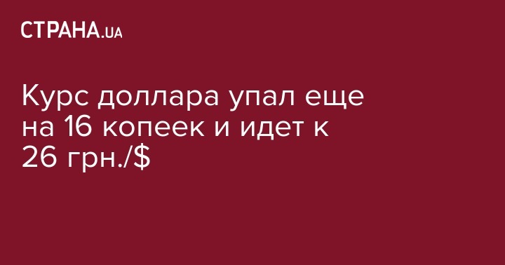 Курc доллара упал еще на 16 копеек и идет к 26 грн./$