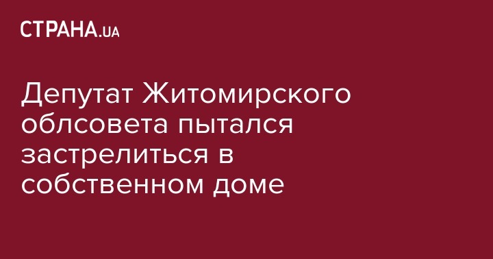 Депутат Житомирского областного совета в Коростене пытался покончить жизнь самоубийством. Об этом сообщил начальник Нацполиции в Житомирской области Вячеслав Печененко на своей странице в Facebook.