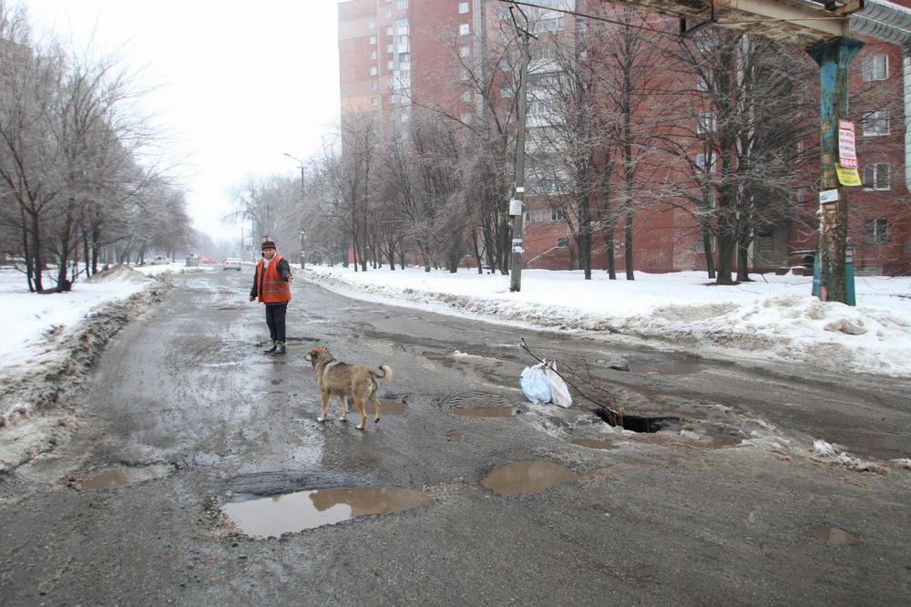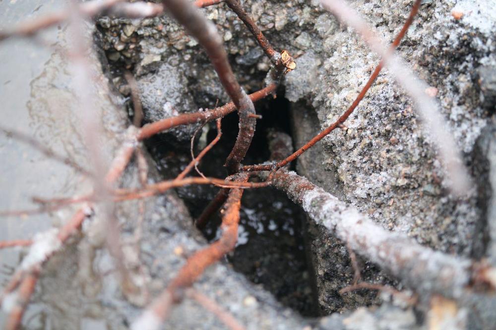 Дыра в асфальте достаточна глубокая и чтобы обратить на нее внимание автомобилистов, местные жители вставили в яме несколько веток. Не исключено, что яма будет увеличиваться в своих размерах, поскольку этому способствует тающий снег.