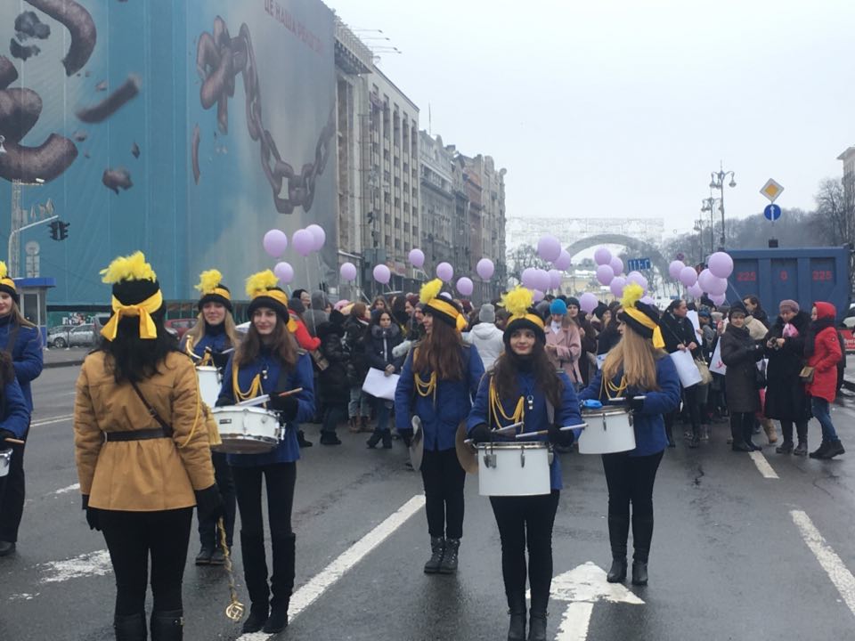 В центре Киева возле монумента Независимости уже собрались участницы женского марша "Oh my March! МАТИ вибір" к Международному дню борьбы за права женщин.