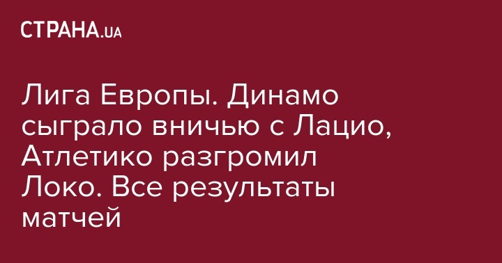Лига Европы. Динамо сыграло вничью с Лацио, Атлетико разгромил Локо. Все результаты матчей