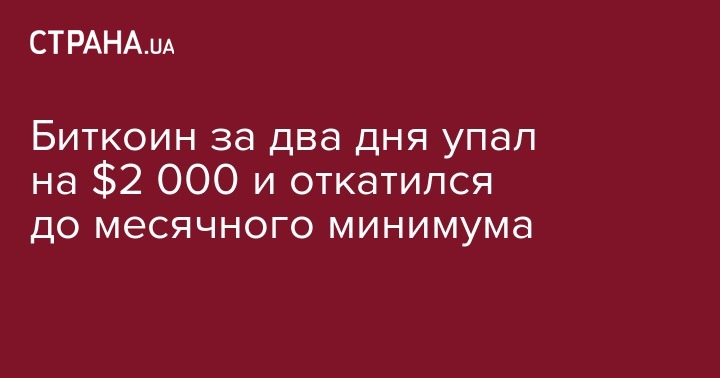 Биткоин за два дня упал на $2 000 и откатился до месячного минимума