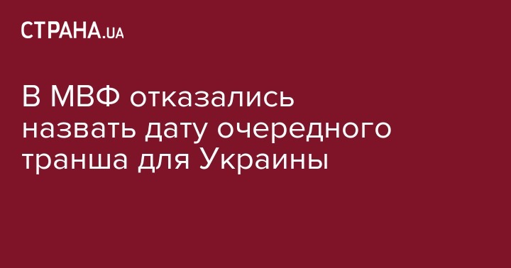 Международный валютный фонд (МВФ) не готов назвать дату очередного транша для Украины, несмотря на поддержку постоянного диалога в рамках четырехлетней программы "Механизм расширенного финансирования" (EFF). Об этом сообщает "Укринформ".