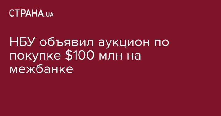Аукцион по покупке до $100 млн на межбанковском валютном рынке объявлен Нацбанком Украины в понедельник, 12 марта.  Об этом говорится в сообщении пресс-службы НБУ.