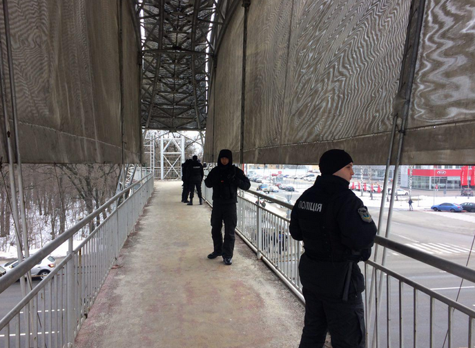 Полиция Киева не дала сторонникам Михаила Саакашвили разместить плакат за отставку Петра Порошенко на мосту на Столичном шоссе.