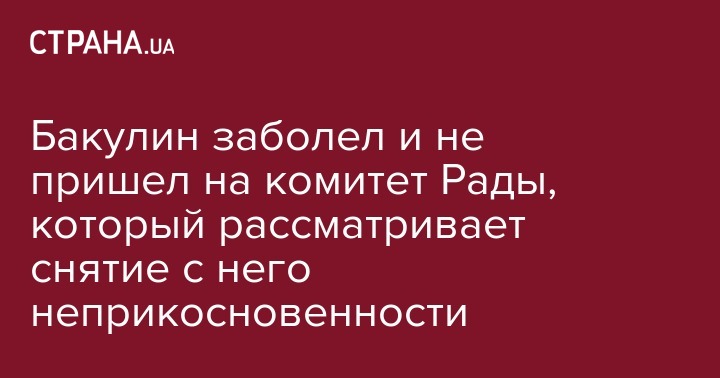 Бакулин заболел и не пришел на комитет Рады, который рассматривает снятие с него неприкосновенности