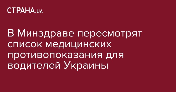"Осознавая необходимость совершенствования медицинского обеспечения в сфере безопасности дорожного движения и приведения в соответствие украинских нормативно-правовых актов к требованиям и стандартам Европейского Союза, МОЗ Украины подняло вопрос пересмотра существующего перечня медицинских противопоказаний для водителей и установление стандартов физической и умственной пригодности для управления транспортными средствами", - говорится в сообщении.
