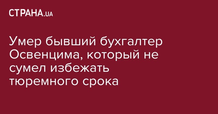 96-летний Оскар Гренинг, обвиненный в пособничестве в убийстве 300 тысяч человек в фашистском концлагере Аушвиц-Биркенау (Освенцим), скончался в больнице.