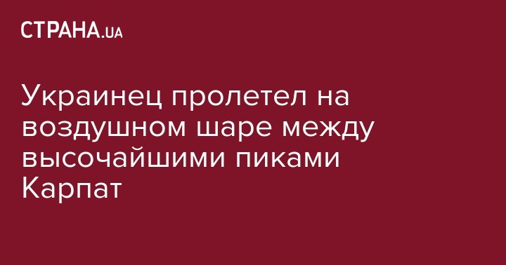 Национальный реестр рекордов Украины зарегистрировал первый перелет на воздушном шаре между высочайшими вершинами Карпат - через Черногорский хребет. Его установил Николай Рубель, уроженец села Сходницы Львовской области.