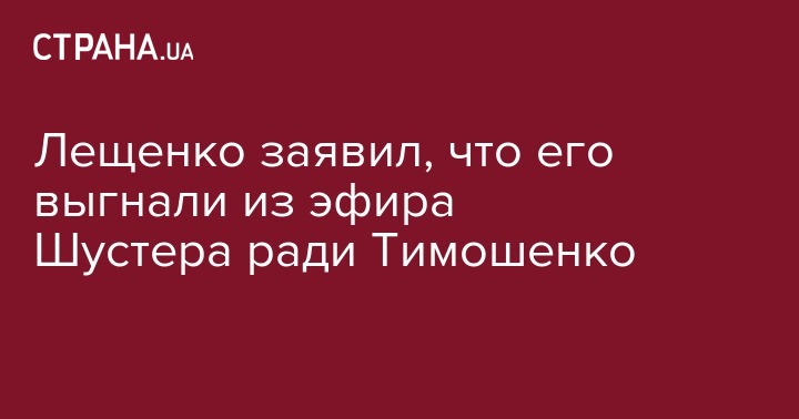 Народный депутат Украины от Блока Петра Порошенко Сергей Лещенко заявил, что в пятницу, 13 мая, его попросили удалиться из эфира программы "Шустер LIVE" после прихода в студию лидера "Батькивщины" Юлии Тимошенко. Соответствующее сообщение появилось на его странице в Facebook.
