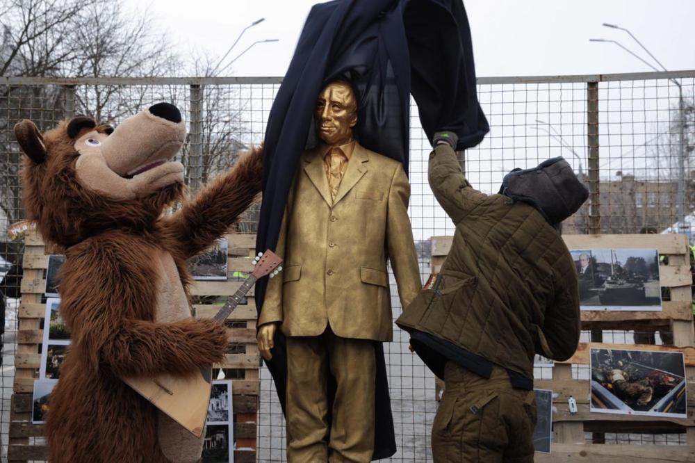 10:31  Под посольство России привели игрушечного медведя с балалайкой. А также сделали скульптуру Путина.