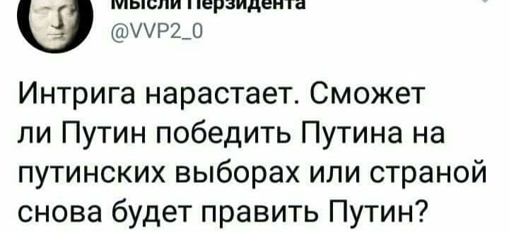 19:54  Кстати, одним из доверенных лиц Владмира Путина на этих выборах был Евгений Петросян.