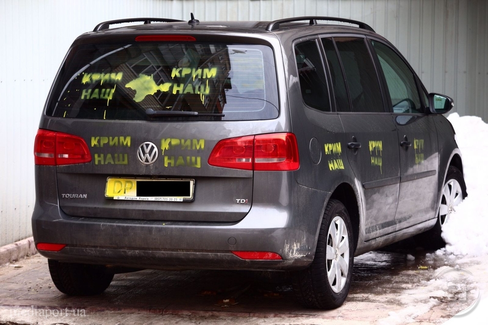 10:37  В Харькове неизвестные разрисовали автомобиль с дипломатическими номерами России, сообщает Медиапорт. Его покрыли надписями "Крым наш" на украинском языке.
