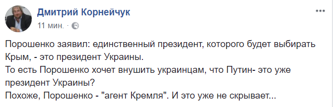 Похоже, Порошенко – "агент Кремля". И это уже не скрывает..." – пишет политолог Дмитрий Корнейчук.