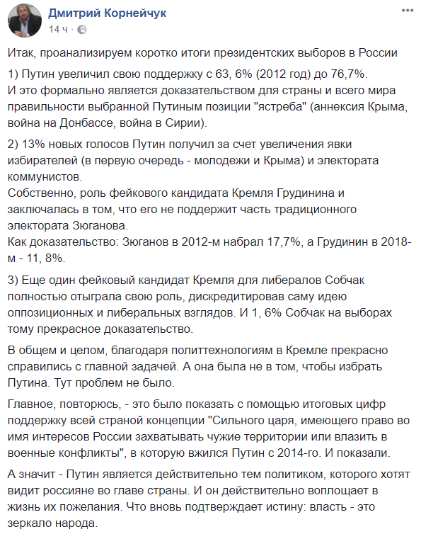 "Итак, проанализируем коротко итоги президентских выборов в России