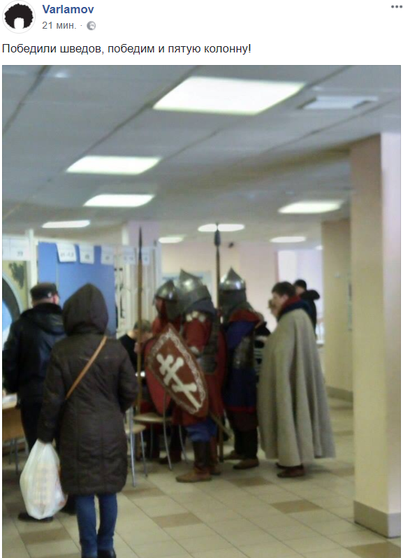 10:45  В Ленинградской области избиратель явился на участок в виде межконтинентальной баллистической ракеты "Сармат".