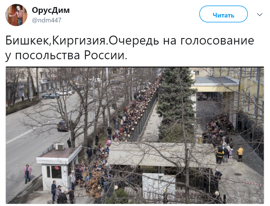 11:15  Очередь в российское посольство в Бишкеке, Киргизия.