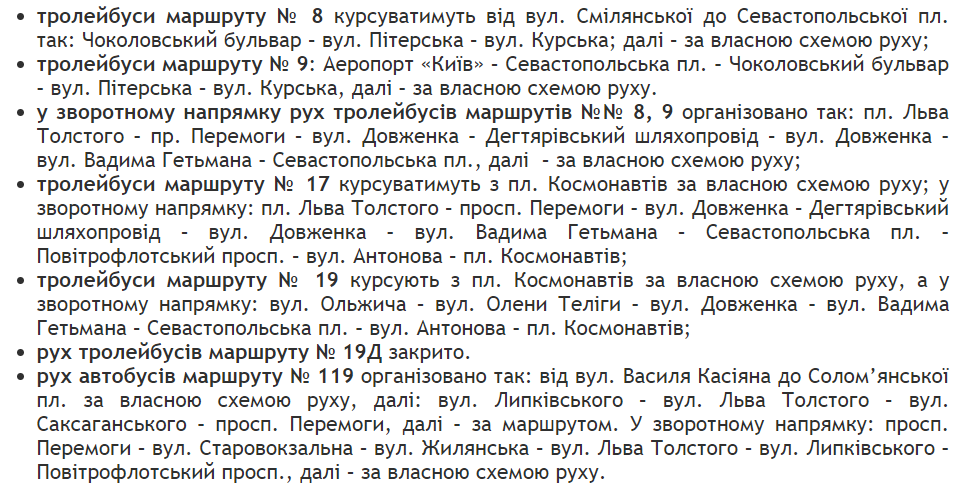 18 марта внесены изменения в движение троллейбусов маршрутов №№ 8, 9, 17, 19, 19Д и автобусов маршрута № 119 в связи с перекрытием полицией участка на проспекте Воздухофлотском в районе дома 25/2 (посольство РФ).