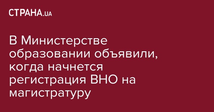 Для поступающих на магистратуру, которым нужно будет сдавать единый вступительный экзамен или испытание (так называемое ВНО на магистратуру), регистрация на тестирование начнется 14 мая. Об этом сообщила пресс-служба Министерства образования и науки Украины.