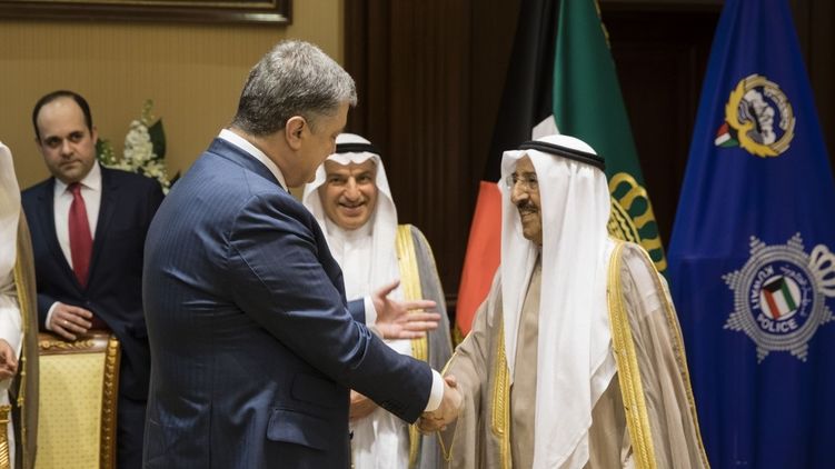 Во время встречи Порошенко с эмиром Кувейта Сабаха аль-Ахмеда аль-Джабера ас-Сабахома стороны договорились о поддержки Кувейтом внешнеполитических инициатив Украины. Речь шла также о перспективах взаимодействия в рамках непостоянного членства Кувейта в Совете безопасности ООН в 2018-2019 гг., в частности по вопросу миротворческой миссии ООН на оккупированной части Донбасса, и членства Украины в Совете по правам человека ООН в 2018-2020 гг.