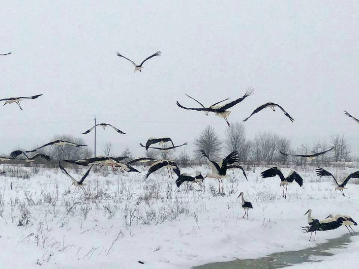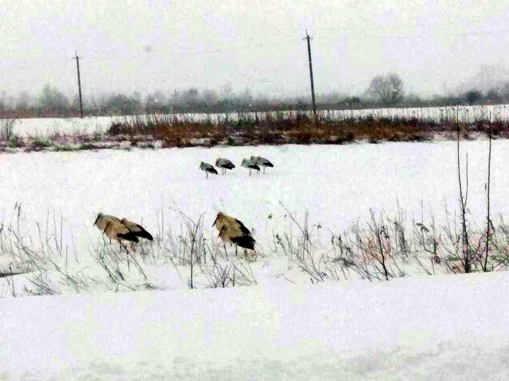 Появились фото, как жители Прикарпатья спасают аистов от холода