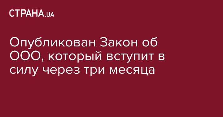 В газете "Голос Украины" от 17 марта опубликован Закон "Об обществах с ограниченной и дополнительной ответственностью", который определяет правовой статус ООО и ОДО, порядок их создания, деятельности и прекращения, права и обязанности их участников, передает Лига.нет.