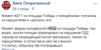 В Киеве на площади Победы произошла авария с участием автомобиля патрульной полиции.