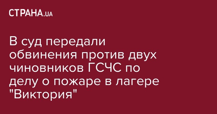В деле о пожаре в лагере "Виктория" прокуратура Одесской области направила в суд обвинительный акт в отношении двух должностных лиц ГУ ГСЧС в области. Об этом говориться на сайте Одесской прокуратуры.