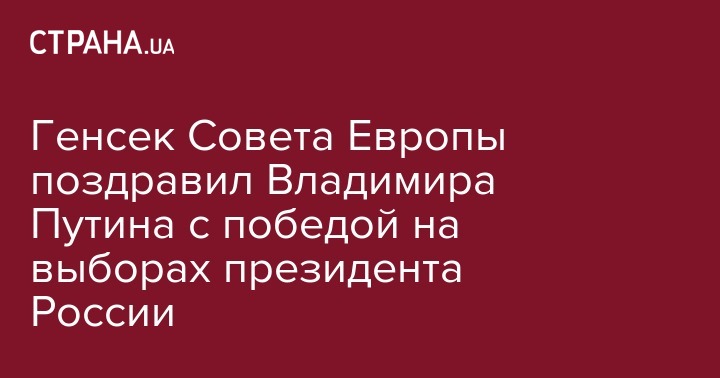 Заявление главы совета распространила пресс-служба организации. Генсек Совета Европы выразил надежду, что новый мандат Путина на пребывание на посту президента будет периодом мира и процветания для россиян.