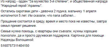 Об этом в Facebook сообщил журналист Юрий Бутусов со ссылкой на семью Волошина.