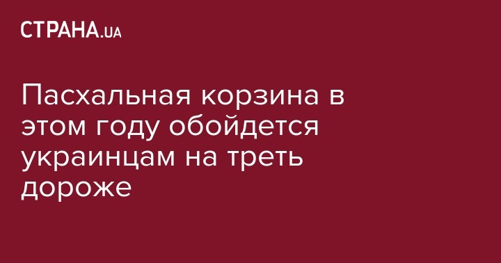 "В этом году традиционные пасха, яйца, домашняя колбаса, буженина, сало, сливочное масло, мягкий и твердый сыр, хрен и соль обойдутся украинцам на 129 гривень – то есть на треть (+ 34,2%) – дороже, чем в прошлом году. Тогда минимальный набор продуктов стоил 377 гривень", - сообщил Лупенко.