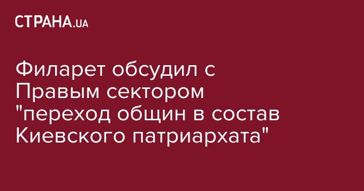 Одним из главных вопросов встречи главы УПЦ КП Филарета с руководством "Правого сектора" стало сотрудничество в сфере "способствования переходов общин Украинской православной церкви в состав Киевского патриархата".
