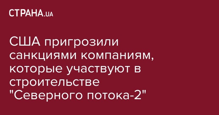 Начальник пресс-службы Госдепартамента США Хезер Науэрт заявила, что иностранные компании, работающие в проекте строительства газопровода "Северный поток - 2" могут попасть под санкции США в рамках закона CAATSA (О противодействии противникам Америки посредством санкций). Об этом сообщает ТАСС.