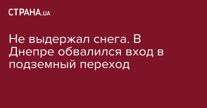 В Днепре на Запорожском шоссе, возле улицы Космической, обвалилась крыша подземного перехода после сильных снегопадов. Инцидент произошел вечером 20 марта.