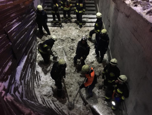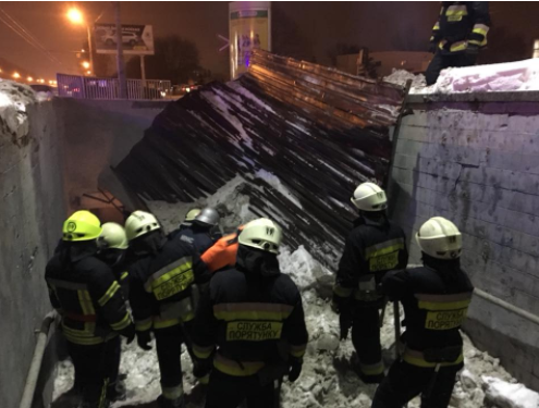 Спасатели расчистили снег лопатами с обрушившихся металлических конструкций. Также с помощью бензореза и ломов они разобрали поврежденную крышу и вынесли ее из подземного перехода.