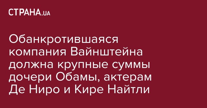 Обанкротившаяся компания Вайнштейна должна крупные суммы дочери Обамы, актерам Де Ниро и Кире Найтли