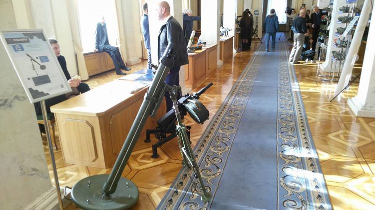 Миномет уже приносили в стены парламента осенью 2016 года, но тогда это была лишь выставка оружия от "Укробронпрома", источник фото: facebook.com/igor.lutsenko
