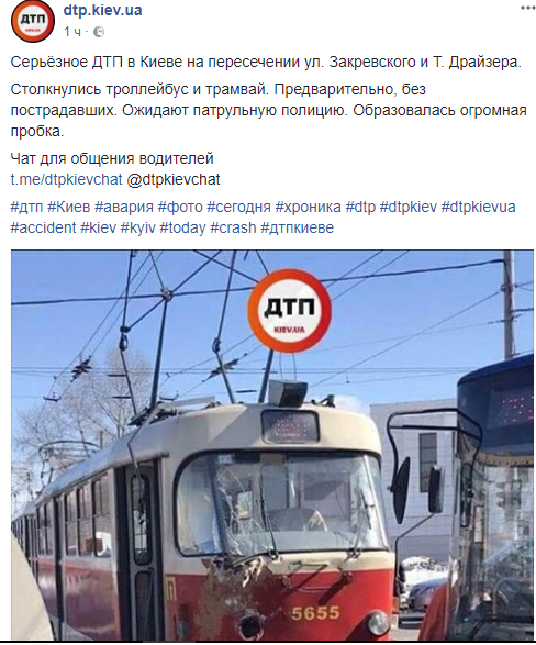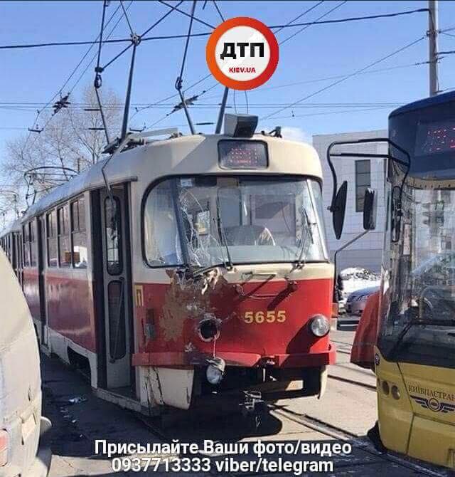 В Киеве на Троещине трамвай протаранил троллейбус, образовалась огромная пробка