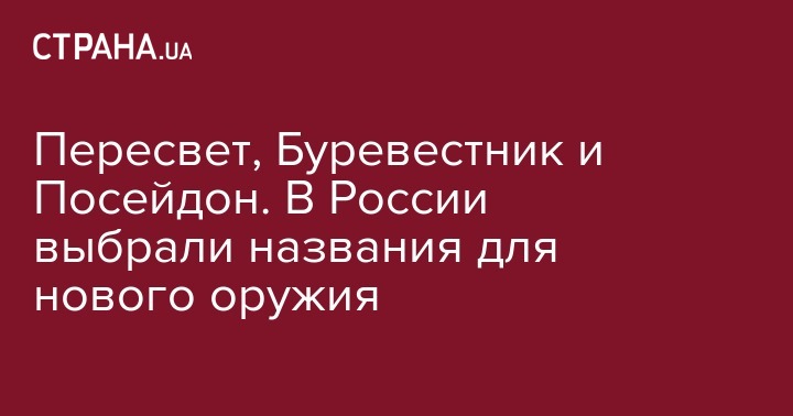Среди названий боевого лазерного комплекса победил "Пересвет". Названием крылатой ракеты с малогабаритной ядерной энергоустановкой жители России выбрали "Буревестник". Наибольшее число голосов среди названий для беспилотного подводного аппарата получил "Посейдон".