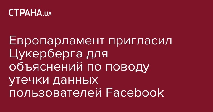 Европарламент пригласил Цукерберга для объяснений по поводу утечки данных пользователей Facebook