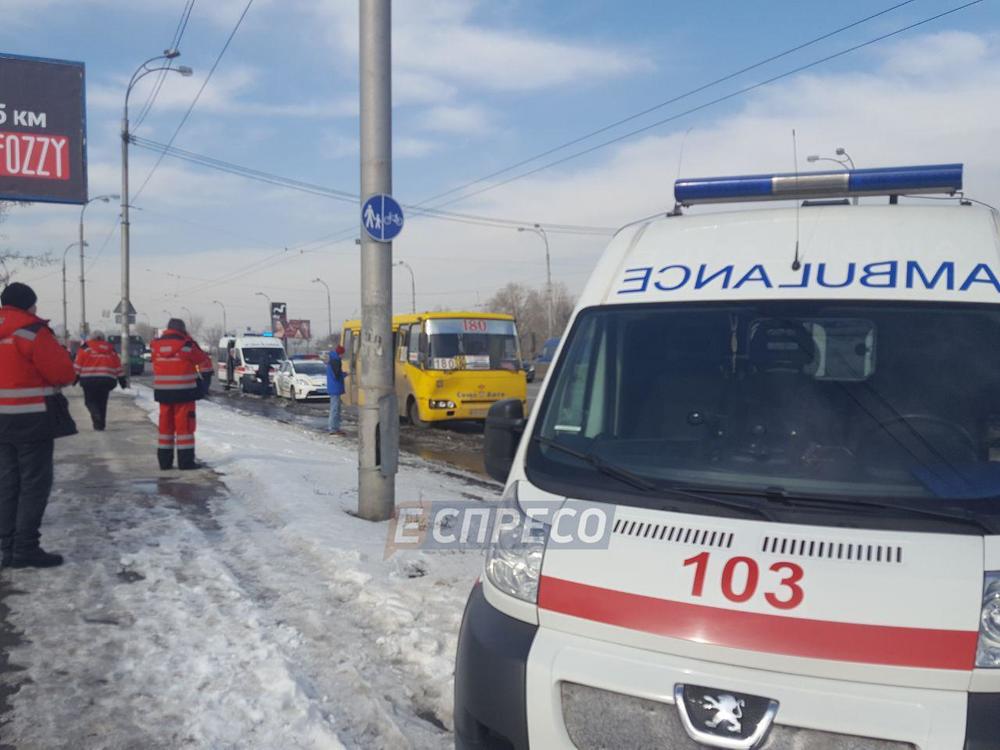 На проспекте Бандеры в Киеве маршрутка врезалась в троллейбус, есть пострадавшие