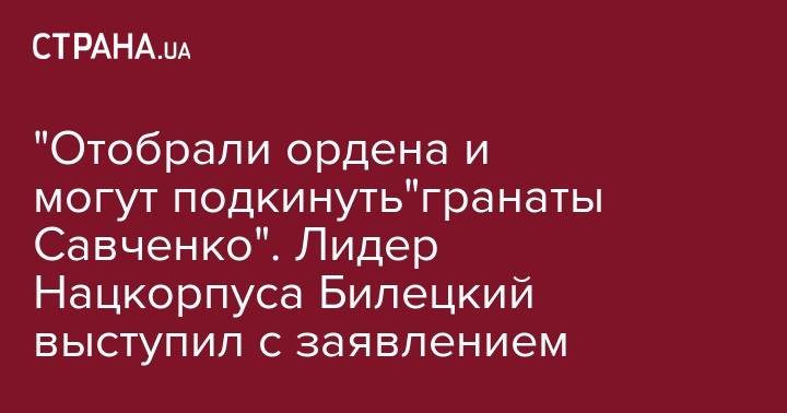 "Отобрали ордена и могут подкинуть"гранаты Савченко". Лидер Нацкорпуса Билецкий выступил с заявлением