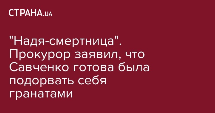 Подозреваемая в подготовке терактов и госпереворота народный депутат Надежда Савченко была готова подорвать себя боевыми гранатами. Такое заявление сделал прокурор во время заседания в Шевченковском районном суде города Киева, где 23 марта избирают меру пресечения для задержанной Савченко.