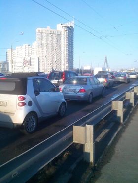 В Киеве, вечером 24 марта, парализовало движение на Северном мосту (бывший Московский мост) в сторону района Троещины. Об этом сообщает корреспондент "Страны".