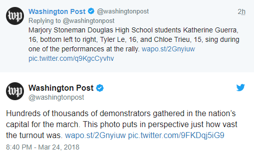 Протест стал одним из самых массовых молодежных протестов со времен Вьетнама. "Марш за наши жизни" в Вашингтоне, насчитывающий сотни тысяч людей, прошел по Пенсильванскому авеню между Капитолием и Белым домом.