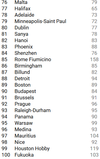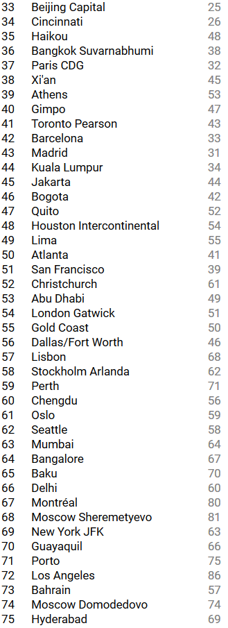 За ним в рейтинге идут: южнокорейский Инчхон, токийский Ханэда, а также аэропорты Гонконга и Дохи.