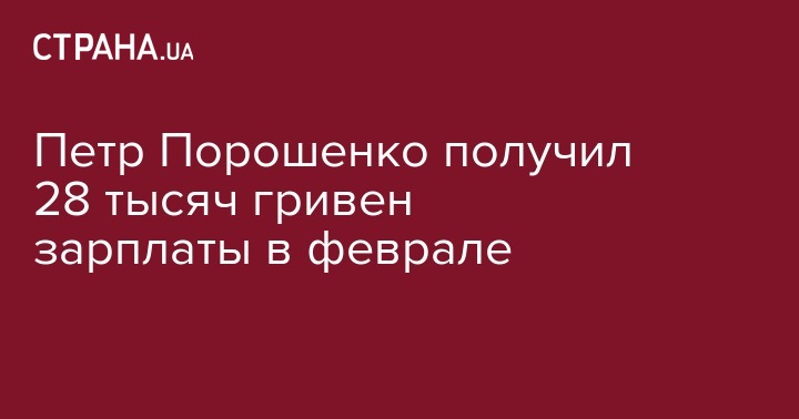 "Заработная плата Президента Украины Порошенко П. А. за февраль 2018 года начислена в размере 28 000 гривен", - сказано в нем.